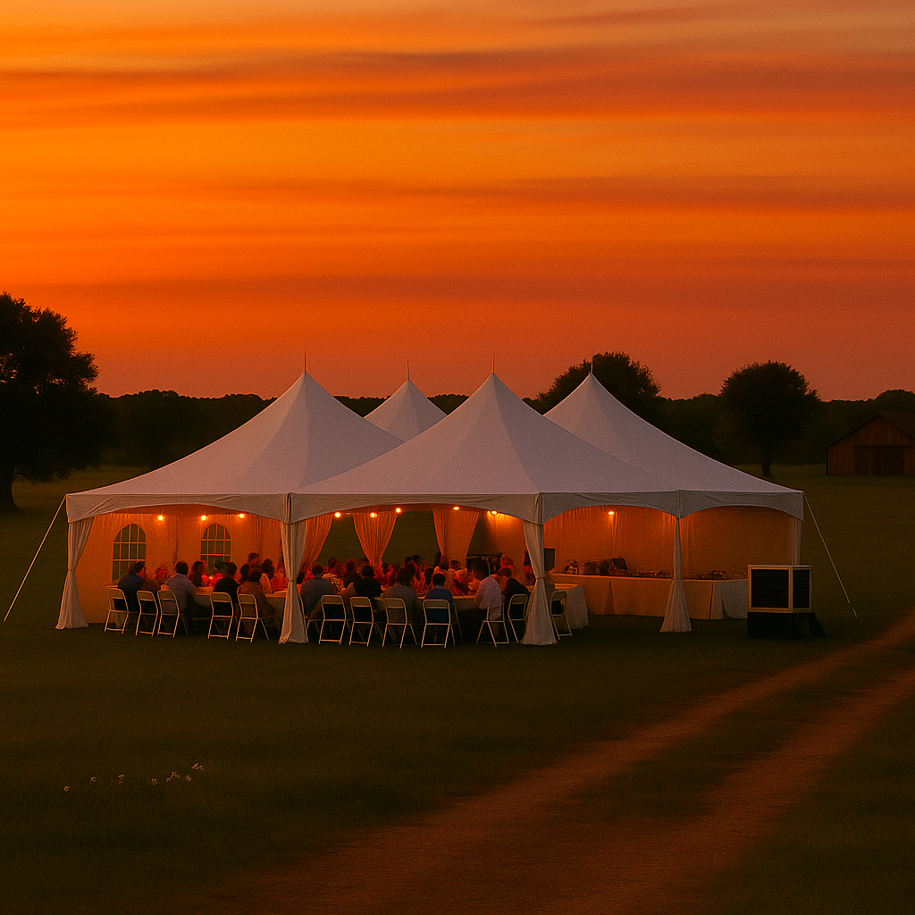 "We rented a 40×20 tent package and ac for our June wedding. Isaiah’s team arrived early, set everything up exactly like the plan, Communication was clear the whole time highly recommended!"